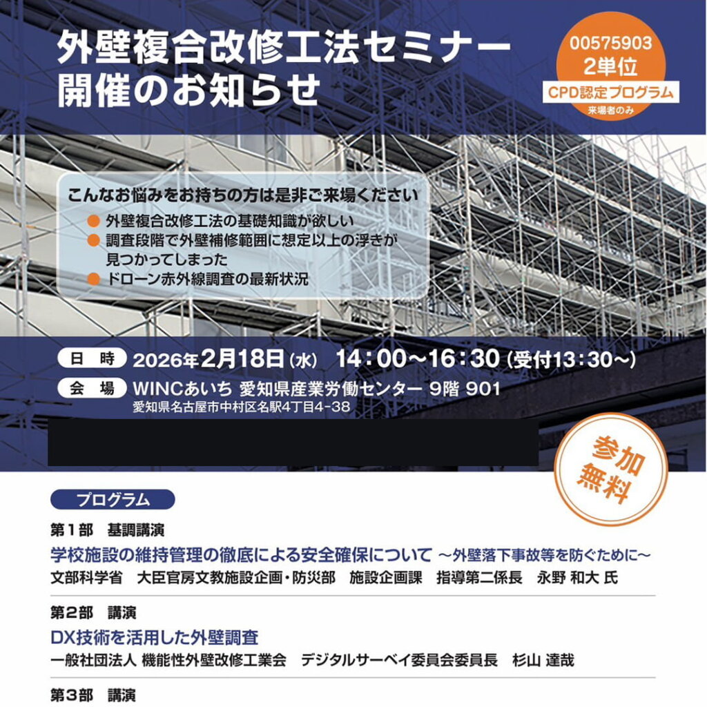 外壁落下事故の未然防止や、効率的かつ精度の高い調査手法の確立など、建物の安全性と資産価値を維持するための実践的な知見を共有する機会となりました。