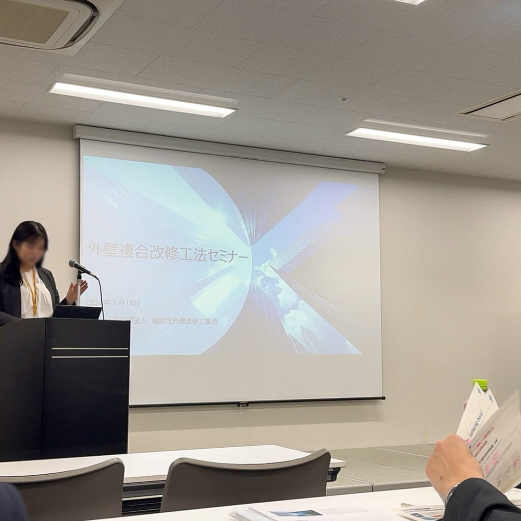 一般社団法人 機能性外壁改修工業会 デジタルサーベイ委員長であり、弊社代表 杉山が登壇し、デジタル技術を活用した外壁調査の最新事例や、現場での具体的な取り組みについて紹介いたしました。