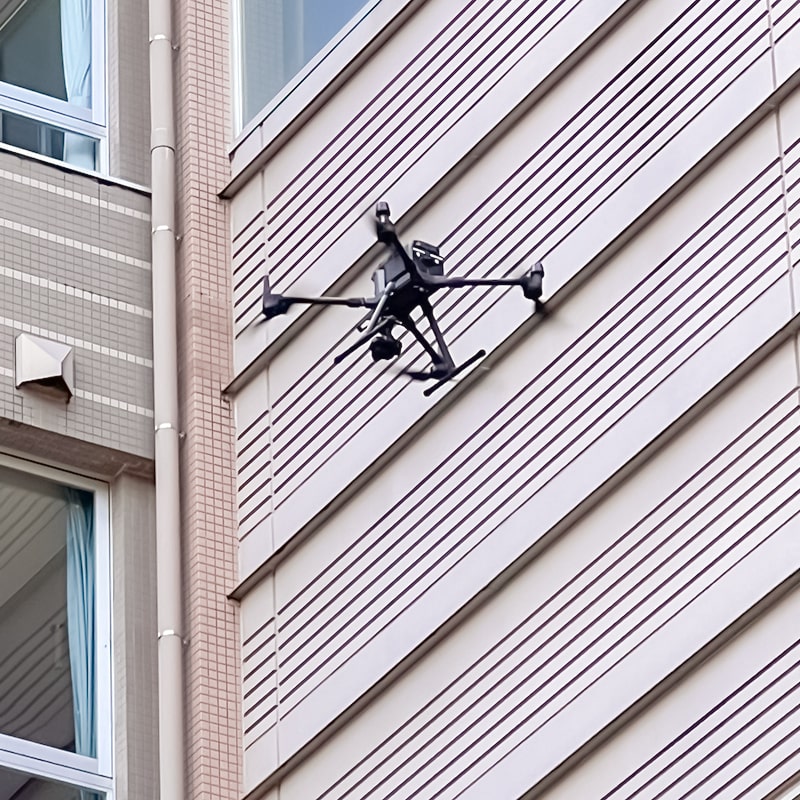 高所・複雑箇所もドローンで足場費用ゼロ。高精細カメラによる全方位撮影で、建物全体の初期データを迅速に収集。事故リスクを排除し、時間とコストを大幅削減する安全点検です。